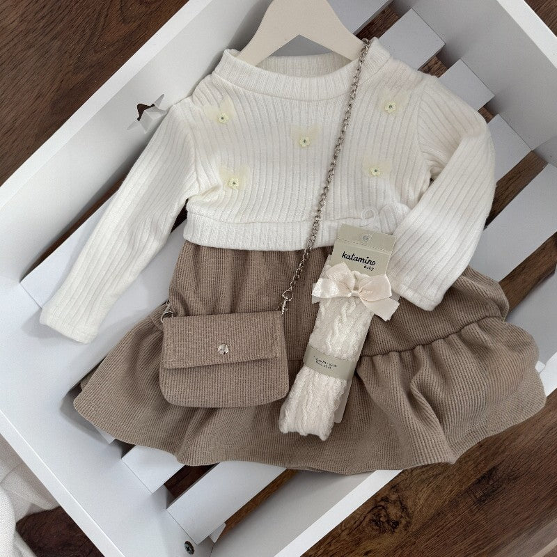 Включената чанта допълва визията и прави комплекта завършен и практичен. Перфектен избор за модерни и стилни малки дами.